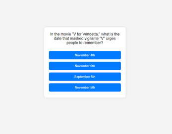 "Enjoy a thrilling Quick Quiz Game that challenges your knowledge! Answer a series of multiple-choice questions on various topics fetched from an external database. Test your wits and see how many correct answers you can get in a row. Each correct answer moves you closer to the next question, while a wrong answer resets the game. Play now and see if you can achieve a perfect score!"
